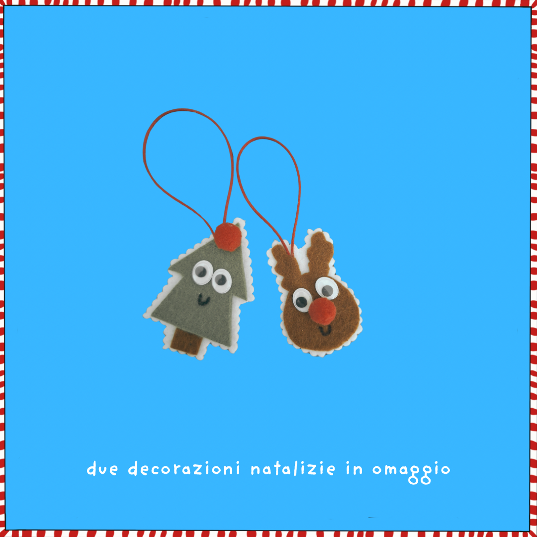 Una busta di feltro dimensioni 13x19 cm con bordino in stoffa a righe bianco e rosso, e con nastrino rosso pronta per essere appesa. Dentro la busta trovi un foglio di 20x14 cm per scrivere la letterina, una matita con pupazzetto in feltro e due decorazioni natalizie in omaggio da appendere.